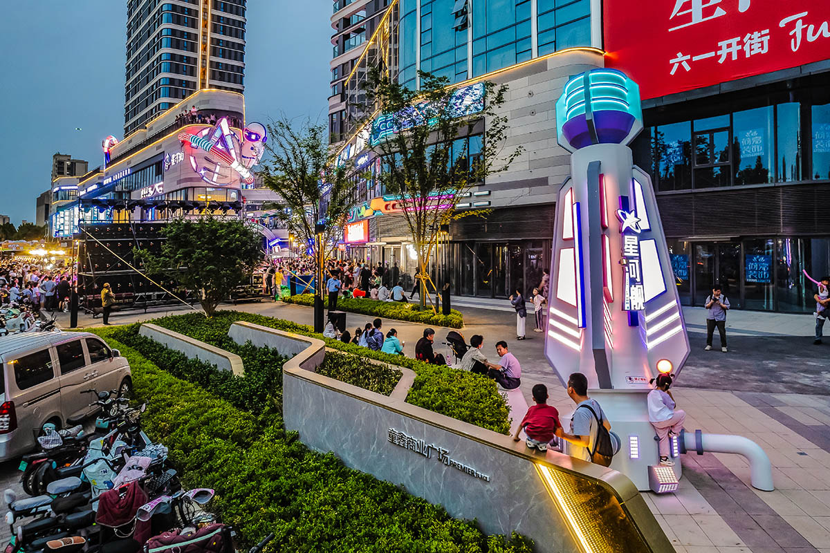 項(xiàng)目的設(shè)計(jì)理念源于科幻與潮酷概念的完美融合,旨在為城市打造一座年輕力地標(biāo),引領(lǐng)三四線(xiàn)城市的消費(fèi)新潮流。我們以星河艦為靈感,突出設(shè)計(jì)特色、豐富業(yè)態(tài)組合、創(chuàng)新商業(yè)空間,在與建筑的適配界面里營(yíng)造一艘穿越星際的宇宙飛船,賦予項(xiàng)目強(qiáng)烈的昭示性,成功吸引年輕消費(fèi)者的關(guān)注與喜愛(ài),成為淄博城市特色商業(yè)發(fā)展的重要力量。